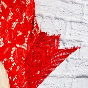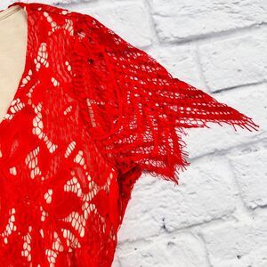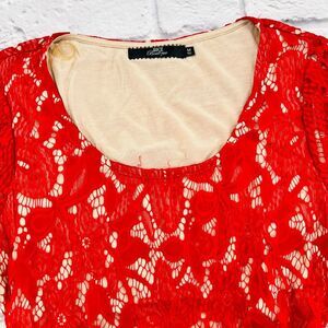 BKE Boutique Lace Overlay Top Women's Medium Red Short Sleeve Cut Out Back