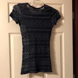 BKE Boutique Navy Silver stripe lace burnout short sleeve blouse. Size medium. 80% nylon 15% silver metallic 5% spandex. Like new condition from a smoke free home.