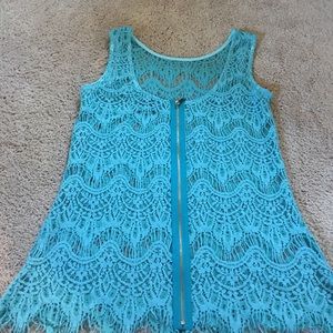 BKE Boutique Turquoise Lace Top.. good used quality.. has one minor snag in the underarm.