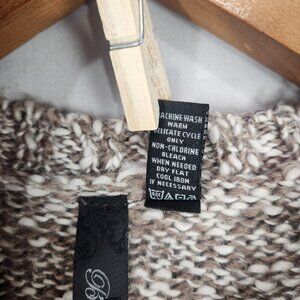 This cute top is in excellent condition. Clean. Zipper up full front. There are large buttons on both sides of zipper that are only embellishments. Shoulders have studs. The front also has a lace overlay sewn in. It is 25% wool so it will be very warm. Over hip length.