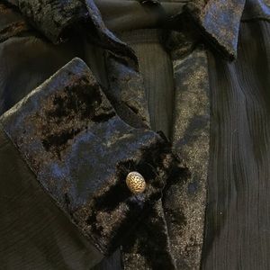 Velvet collar and sleeves mostly sheer shirt. Only worn a few times.