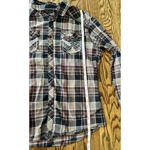 BKE Buckle Black No 48 Standard Fit Shirt Mens Large Plaid Snap Up Rockabilly