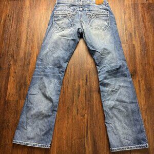 BKE Buckle CARTER Boot Leg Jeans Thick Stitch Distressed Medium Wash Men’s 33