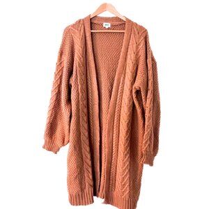 BKE- Buckle- Chunky Knit Cardigan Pecan Cable Knit Long Cardigan Sweater Large