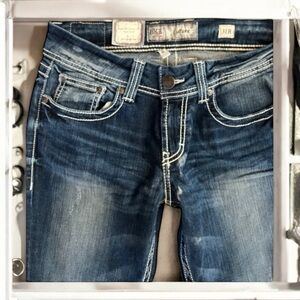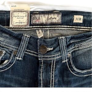 BKE DENIM Hansen Curvy fit bootcut NWT Intentionally distressed. CURVY FIT great med/dark blue denim. New with tags. Never worn.