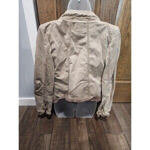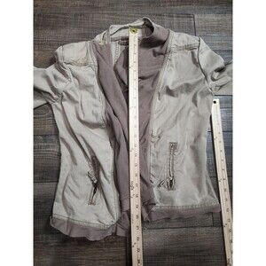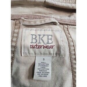 BKE Buckle Denim Jacket Small Womens Khaki Knit Waterfall Trim Open Front