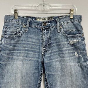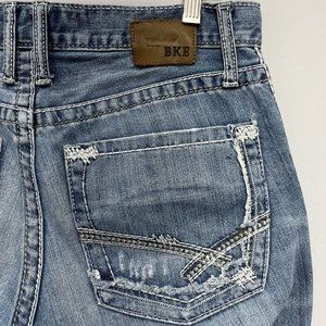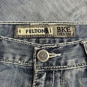 BKE Buckle Fulton Men's Medium Wash Bootcut Denim Distressed Jeans Size 31R guc