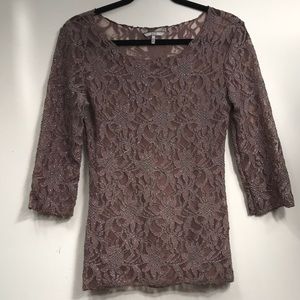 BKE Buckle Lace Top Womens 3/4 Length Sleeve Minimal Brown Size Small