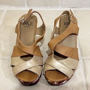 BKE Buckle Manarola faux leather lightweight platform wedge sandals size 6