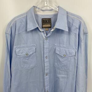 BKE Buckle Men's Athletic Fit Shirt Western Cotton Pearl Snap Blue Stripe XXL