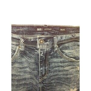 BKE Buckle Men's Jeans Jake Straight Whiskered Distressed Dark Wash Size 30x32