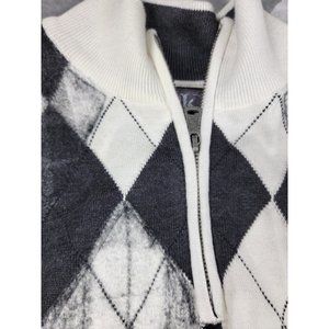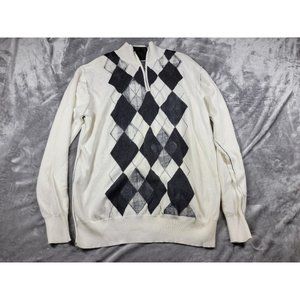 BKE Buckle Mens Size XL 1/4 Zip White/Black/Gray Argyle Check Knit pullover