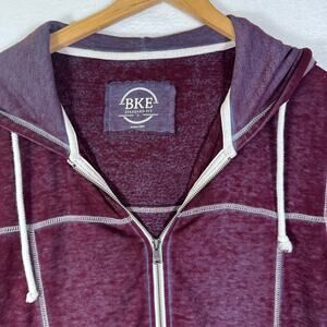 BKE Buckle Mens Zip Up Sweater with Hood Large Burnout Y2K Red Skater Comfy