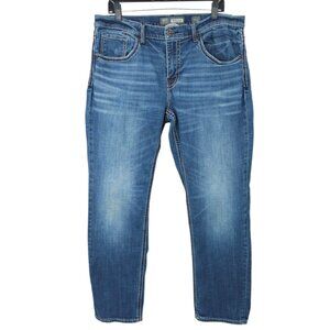 BKE Buckle Nolan Straight Leg Mens Size 36R Distressed Whiskered Denim