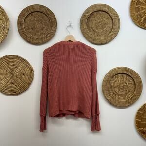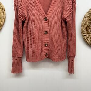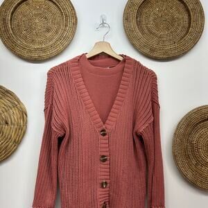 BKE Buckle Pink Button Up Knit Pointelle Tank & Cardigan Sweater Set Medium