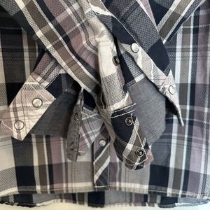 BKE Buckle Standard Fit Plaid Shirt XL Pearl Snap Button Western Blue/Grey/Purple