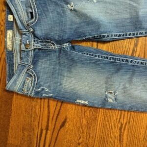 BKE Buckle Sabrina Cropped denim distressed Jeans Sz 27 Embroidery on pockets