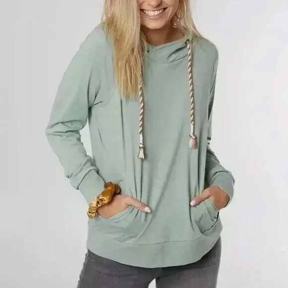 BKE hoodie, sage green pullover, Buckle sweatshirt, comfy casual hoodie, soft drawstring hoodie, twisted cord hoodie, everyday loungewear, cotton blend hoodie, BKE size medium, kangaroo pocket sweatshirt, women’s casual hoodie