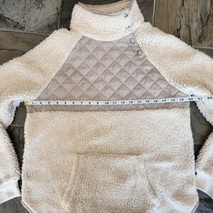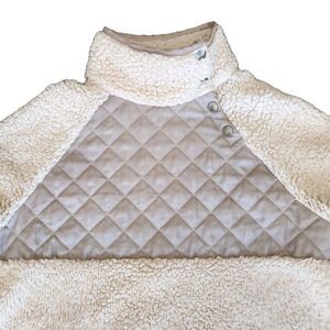 BKE Buckle Sherpa Quilted Sweater Women's Size S ( Small ) Beige Mock Collar Angled Quarter Snap Button Up T Snap Long Sleeve Sweater With Front Pocket. Gorpcore Cabincore Cozy Warm Unique Outdoors Urban Running Jogging Camping Hiker Style.