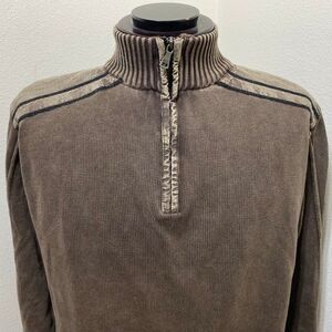 BKE Buckle Sweater Mens Size XL Athletic Fit Long Sleeve Brown 1/4 Zip Distressed Pullover