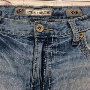 BKE Buckle Tyler Straight Jeans Men’s 33 x 26 Thick Stitch Distressed Destroyed