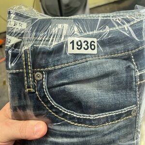 BKE Buckle Tyler Straight Leg Jeans Mens 32R Blue Denim Stretch Stitches 1936