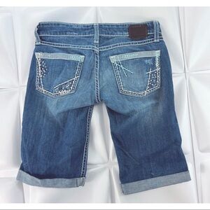 BKE Buckle Womens Sz 23 Stella Denim Embroidered Patchwork Bermuda Jean Shorts