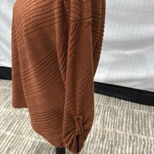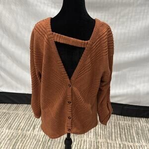 Stylish burnt orange knit sweater. Ideal for cool weather. Beautiful back detail