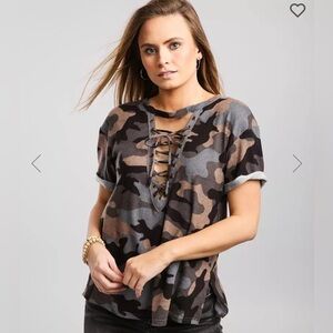 Women’s BKE lace up cut out top. Grey, blue, and pink. Medium. Worn only a handful of times.