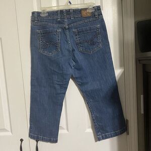 These jeans are a must-have for any fashion-forward woman looking to add a touch of sophistication to her summer wardrobe. With its high-quality denim fabric and flattering fit, this BKE capri is sure to become a staple in your wardrobe.