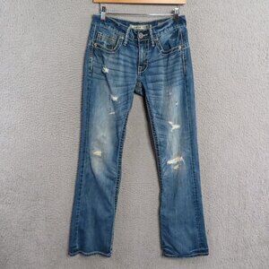 BKE Carter Mens 28 R Light Blue Denim Jeans Mid Rise Ripped Cotton Button Zip