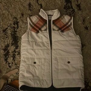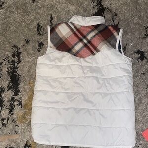 Elegant white vest with eye-catching plaid accents. Ideal for layering.