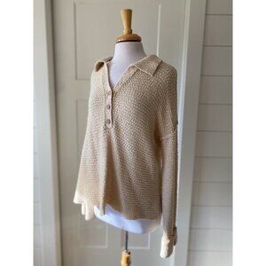 Super cute buckle sweater that is a soft cream color, tagged size small.
