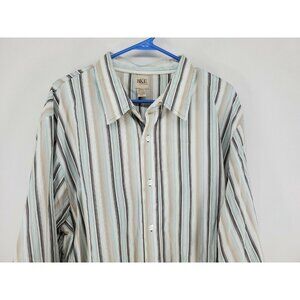 BKE Contour Button Up Shirt Men's Size XXL Stretch Brown Blue Stripes
