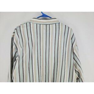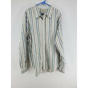 BKE Contour Button Up Shirt Men's Size XXL Stretch Brown Blue Stripes Cotton Nylon Blend