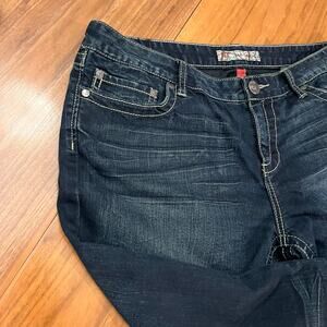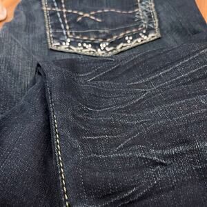 BKE Culture Jeans Size 36 x 33.5 Dark Wash Bootcut Stretch Rhinestone Embroider