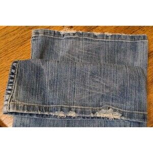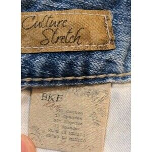 BKE Culture Jeans Women's 31 x 29.5 Blue Stretch Bootcut Whiskering Distressed