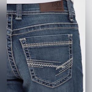 BKE Dakota jean short in classic blue. Comfortable and stylish.