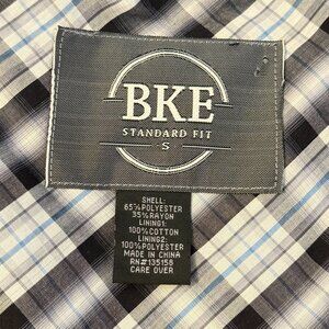 BKE | Dark Grey Pinstripe 5 Button Front Men's Vest with Checkered Lining