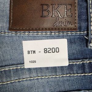 Stylish BKE Denim “Dakota” women’s crop jeans in a light wash with rolled cuffs. Mid-rise fit with contrast stitching, faded whiskering, and a soft stretch feel for comfort and style. Features 5-pocket design and signature back pocket embroidery. Made in Vietnam from 69% cotton, 15% rayon, 15% polyester, 1% spandex.
