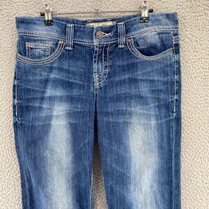BKE Denim Jeans Womens 30 Harper Blue Medium Wash Contrast Stitch Crop Stretch