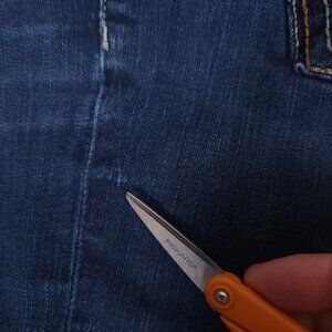 Pre-Owned Condition. FLAWS...fraying along hems and other edges. Creasing along waistband. Abrasion right side. Small hole back of bottom of right leg. See Photos.