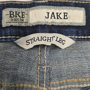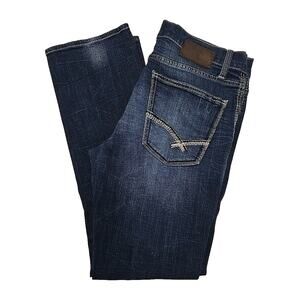 BKE Denim Mens Jake Jeans Sz 34R (34x31) Straight Stretch Embroidered Whiskered