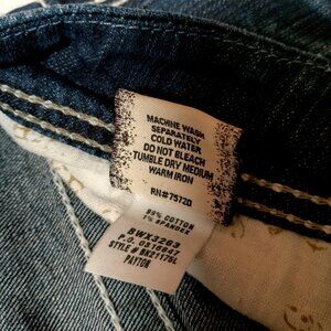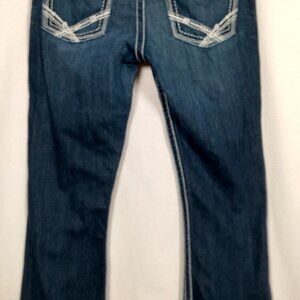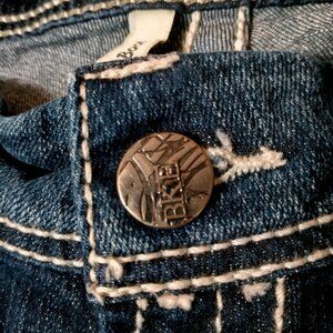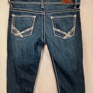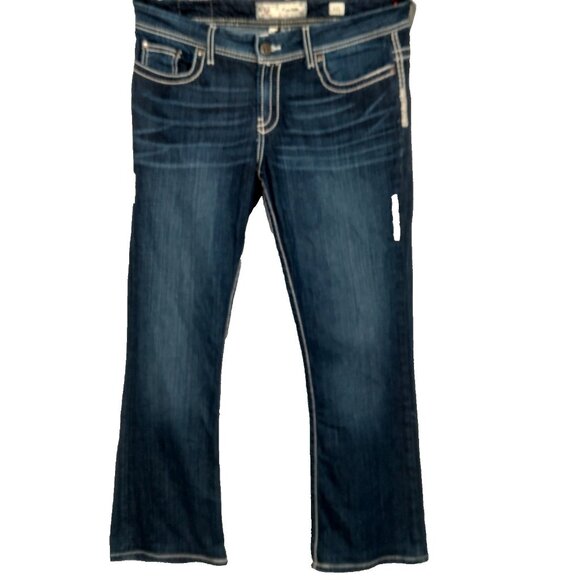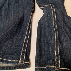 BKE Denim Payton Jeans Women 32L Dark Wash Blue Pants Whiskered White Stitching