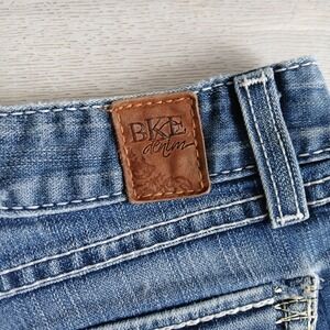 Keywords: BKE denim shorts, Sabrina shorts, womens jean shorts, size 27 shorts, blue denim shorts, embellished pocket shorts, casual shorts, western style shorts, BKE shorts, denim cutoffs, distressed shorts, BKE Sabrina, junior shorts, size 27