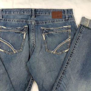 BKE Denim Tyler straight leg men's 33L cuffed 5 pocket distressed whiskered