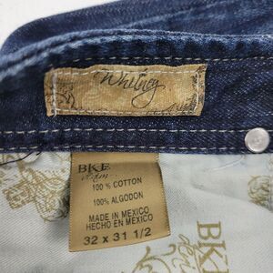 32 x 31 1/2 dark denim; Whitney bootcut; I have personally never wore these. They didn’t fit the way I wanted, but are amazing jeans and in great condition!