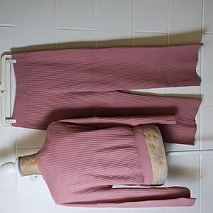 BKE Faded Lulu's Snuggly Style Mauve Pink Wide Ribbed Sweater Knit Set