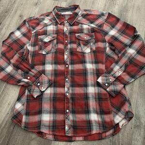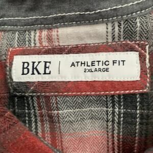 BKE Flannel Shirt Mens 2XL Pearl Snap Long Sleeve Athletic Fit Red Black Plaid
