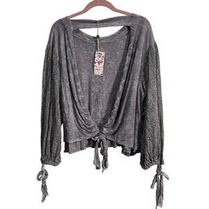 BKE Gimmicks FAB! Embroidered Mesh Boho Open Tie Festive Top in Gray L With Tags